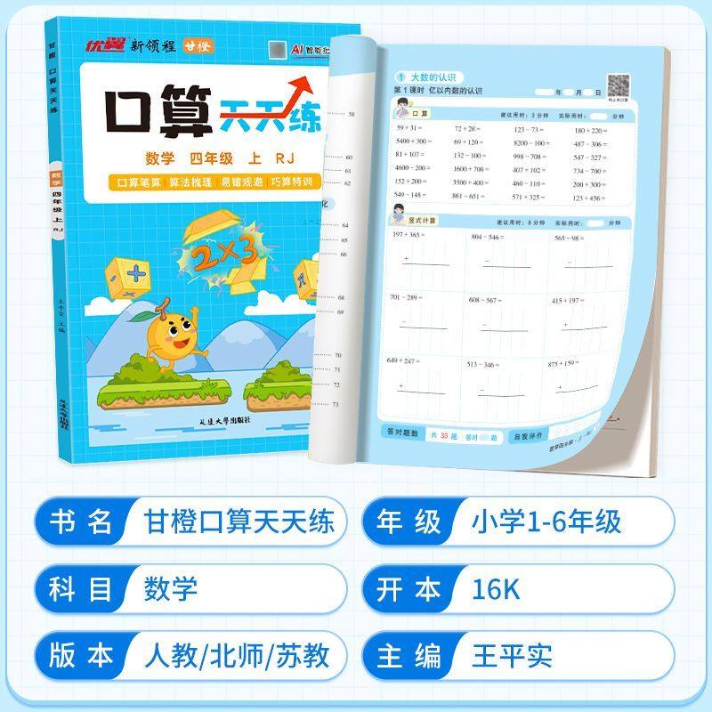 2026新版《优翼甘橙小学口算天天练》专为1-6年级学生设计,覆盖人教版、北师大版教材,同步上册下册内容。丛书紧扣新课标,系统编排口算、竖式、脱式等专项训练,题型丰富、梯度合理,注重基础巩固与思维拓展并重。每日一练,提升计算速度与准确率,强化数感与逻辑思维。题目设计贴近生活,趣味性强,配有详细解析,便于家长辅导与孩子自主学习。适用于课堂同步练习、课后巩固及假期复习,是小学生夯实数学基础、提升运算能力的优质教辅材料,助力孩子轻松应对各类数学挑战。