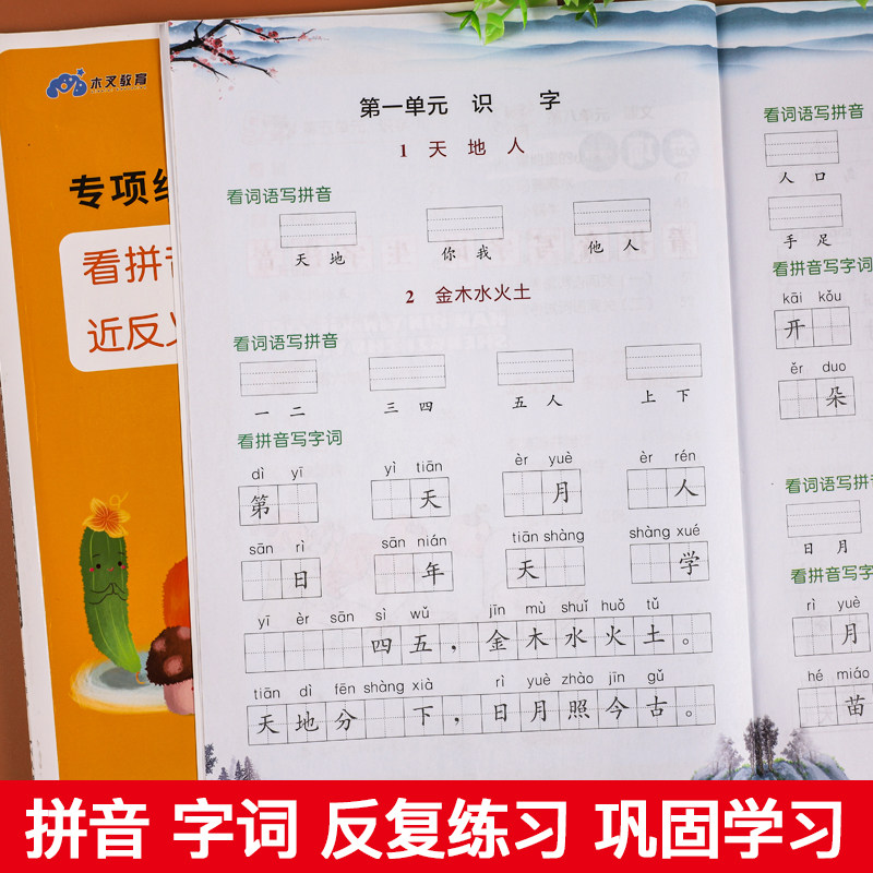 天猫看拼音写词语一年级上册下册生字注音全套人教版小学1上语文生字组词基本功专项训练同步练习册默写能手天天练课堂练习题提升训练