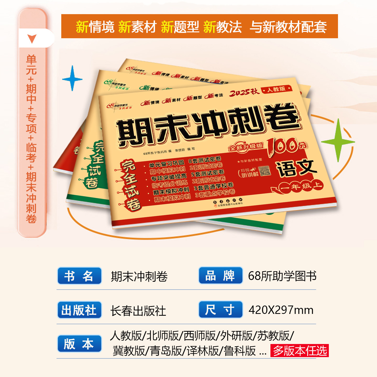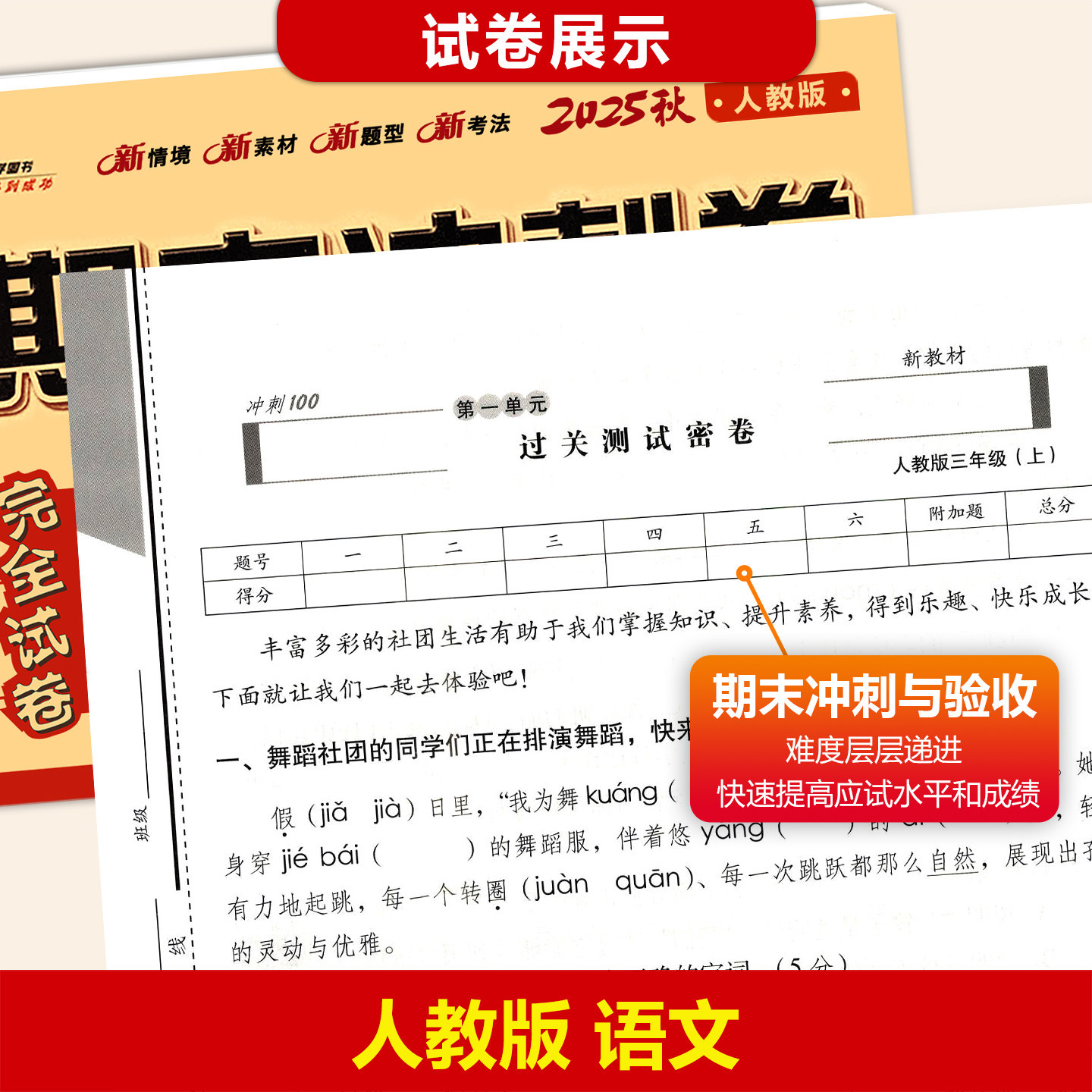 《人教版期末冲刺100分·语文三年级上册》是一本专为小学三年级学生设计的同步练习与复习用书,紧扣人教版语文教材内容,系统梳理单元知识点,涵盖字词、句子、阅读与写作等核心板块。书中配有精选的期中、期末模拟测试卷及专项练习题,题型丰富,难度适中,帮助学生巩固所学、查漏补缺。通过阶段性训练与综合复习,有效提升语文综合能力,助力学生在考试中取得优异成绩。该书编排科学,讲解清晰,是广大家长和师生公认的畅销复习资料,深受小学三年级学生欢迎,是期末备考的理想选择。