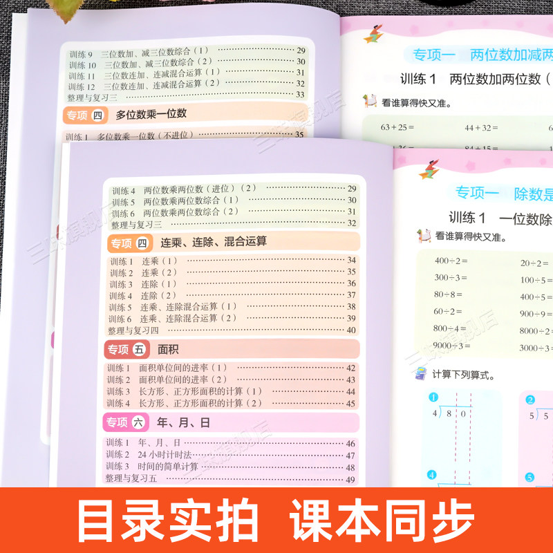 三年级上下册口算天天练人教版数学计算题每日一练小学3年级强化专项训练同步练习题册口算题卡竖式解题技巧计算高手三合一应用题