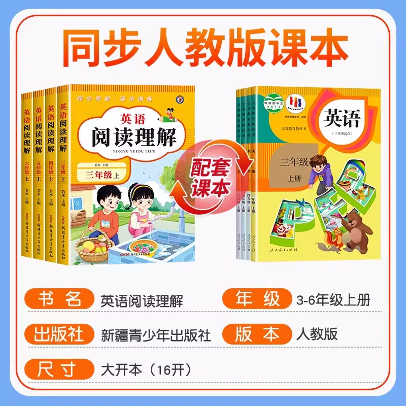 《三四五六年级英语阅读理解上册下册(人教版)》是一本专为小学中高年级学生设计的同步练习册,紧扣人教版英语教材内容,系统覆盖单词、句型、语法及阅读技巧。本书分为完形填空与阅读理解两大专项,每课配备一课一练,题型丰富,难度循序渐进,帮助学生巩固课本知识,提升语言综合运用能力。练习材料贴近学生生活,注重趣味性与实用性结合,有效培养英语思维和答题技巧。适合课堂巩固、课后复习及家庭自学使用,是提升小学生英语阅读能力的优质辅助资料。