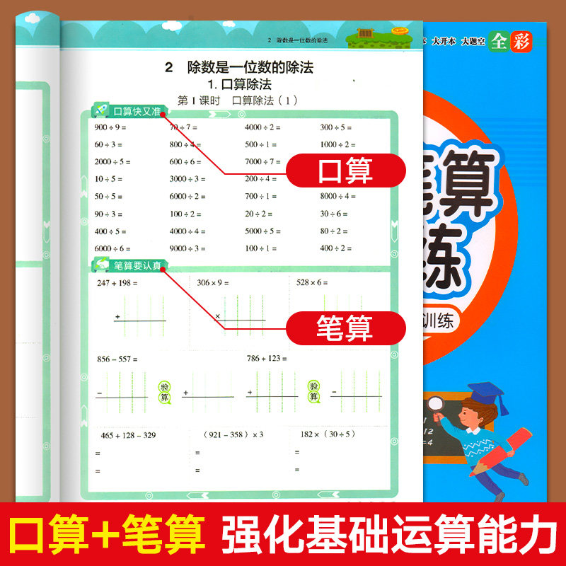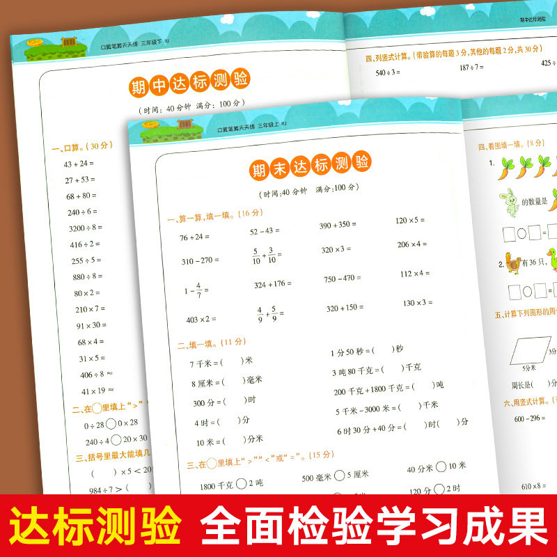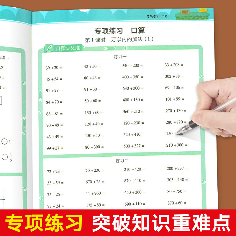 三年级上下册口算天天练人教版数学计算题每日一练小学3年级强化专项训练同步练习题册口算题卡竖式解题技巧计算高手三合一应用题