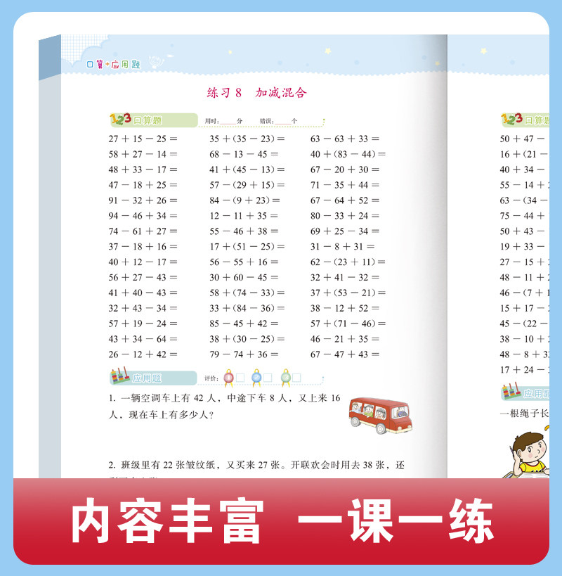天猫当当网 一二年级上下册数学口算应用题专项强化训练人教版课本同步练习册练习题课时作业本上学期口算题卡天天练分解思维一课一练