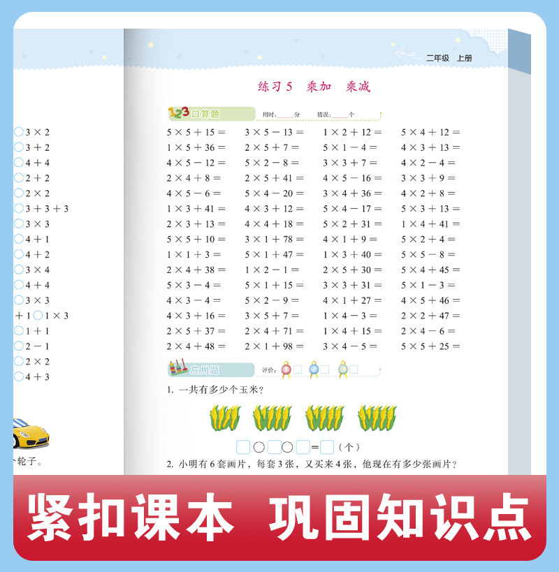 二年级口算天天练数学上册下册口算题卡每日一练脱式计算题人教版同步小学2年级数学口算同步练习题册加减乘除法口算专项思维训练