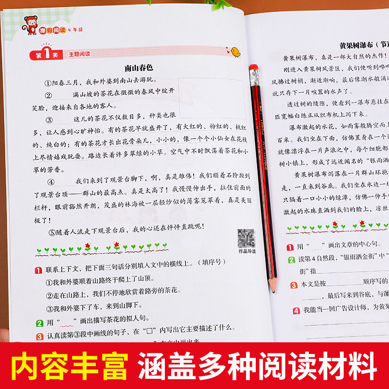 2025年新版《四年级阅读理解训练题》(人教版)专为小学四年级学生设计,紧扣语文课程标准,精选与课本同步的优质短文,涵盖写人、叙事、写景、状物等多种文体。本书注重阅读能力与思维训练的结合,每篇短文配有针对性练习题,题型多样,难度适中,帮助学生掌握关键词句理解、段落概括、主旨提炼等核心技能。每日一练的设计,便于学生坚持积累,稳步提升阅读水平。同时,本书兼顾寒假复习与下学期衔接,是巩固课内知识、拓展课外阅读的理想专项训练用书,助力学生在语文学习中夯实基础、提升素养。