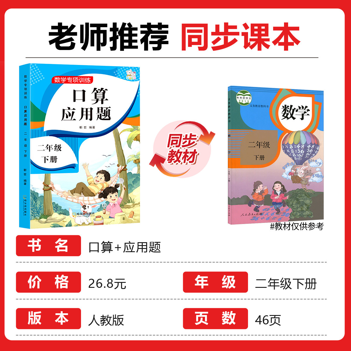 《二年级口算+应用题下册》是人教版小学数学同步练习册,专为二年级学生设计,紧扣教材内容,强化100以内加减法的心算、速算能力。本书包含每日口算题卡和应用题专项训练,通过“天天练”“每日一练”的形式,帮助学生夯实基础,提升计算准确率与速度。应用题部分结合生活情境,培养数学思维和解决问题的能力。题型丰富、梯度合理,适合课堂巩固与家庭练习,是提升数学综合素养的优质辅助资料,助力学生轻松掌握下册重点知识,养成良好学习习惯。