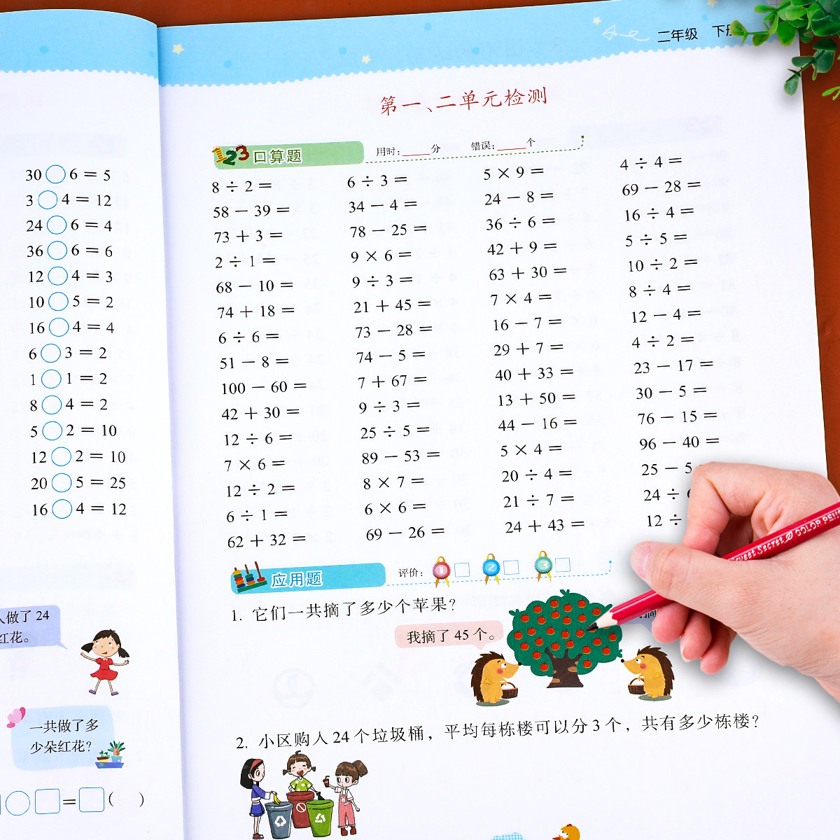 二年级口算天天练数学上册下册口算题卡每日一练脱式计算题人教版同步小学2年级数学口算同步练习题册加减乘除法口算专项思维训练