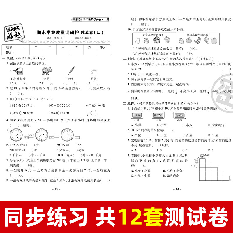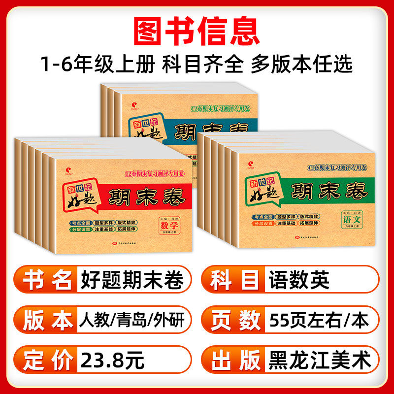 《小学期末复习测评卷》(一至六年级上册)是一套专为小学生期末总复习设计的综合测试卷,涵盖语文、数学、英语三科,适配青岛地区人教版(语文、数学)和外研版(英语)教材。试卷紧扣课标要求,题型全面,难度适中,包含单元巩固、专项训练与全真模拟,帮助学生系统梳理知识点,查漏补缺。每册均设“期末冲刺100分”专题,精选高频考点与易错题型,强化应试能力。题目设计注重基础与拓展结合,图文并茂,贴近学生实际,是期末复习的高效必刷练习册,助力学生夯实基础、提升成绩,轻松迎接期末考试。