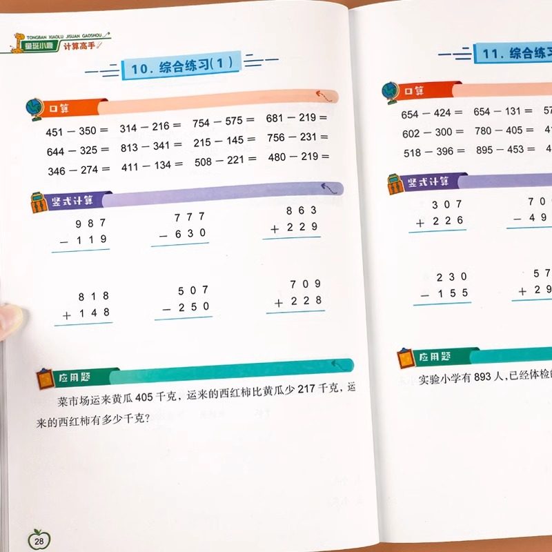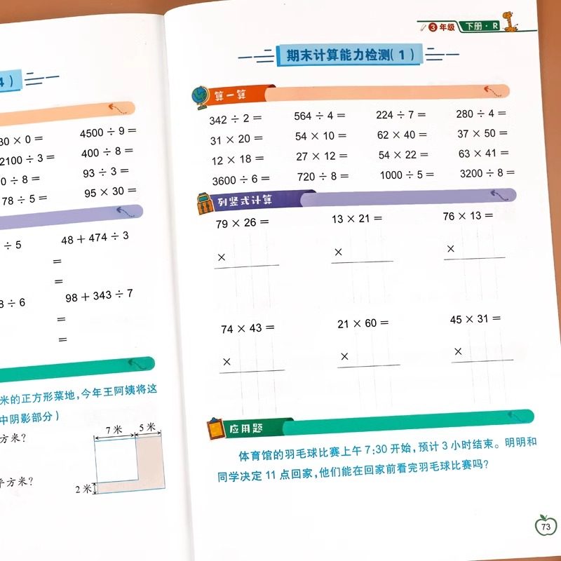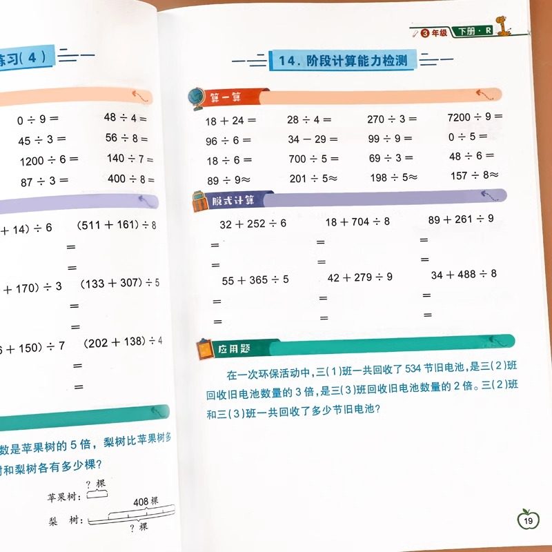 三年级上下册口算天天练人教版数学计算题每日一练小学3年级强化专项训练同步练习题册口算题卡竖式解题技巧计算高手三合一应用题