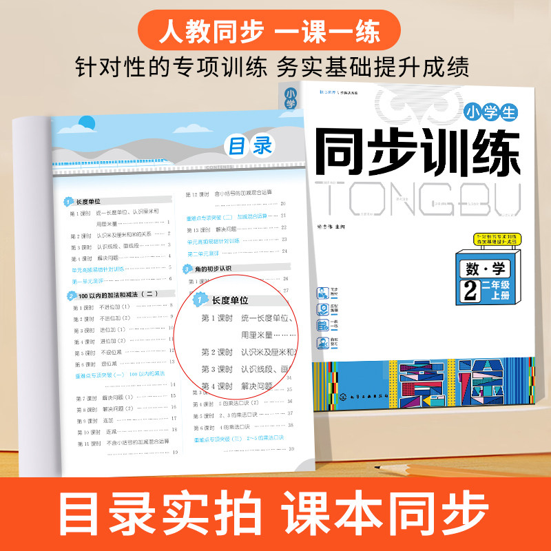 《同步训练·小学数学人教版二年级上册作业一课一练专项强化练习题》是一本紧扣教材、同步课堂教学的练习册。本书依据人教版二年级上册数学教材编写,每课配套基础巩固与能力提升题,涵盖加减法、表内乘法、长度单位、角的认识等核心知识点。题目设计由易到难,注重基础训练与思维拓展相结合,帮助学生及时巩固所学内容,提升计算能力与解决问题的能力。同时设置专项强化练习,针对易错点和重难点进行集中训练,助力学生查漏补缺。题型多样,图文并茂,贴近学生生活,激发学习兴趣,是课堂学习的有效补充和课后练习的理想选择。