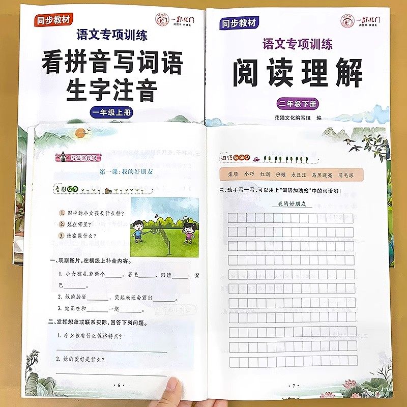 天猫新版一二年级上下册阅读理解看拼音写词语句子训练课文内容填空看图说话写话小学默写能手组词造句练习题语文专项训练同步练习册