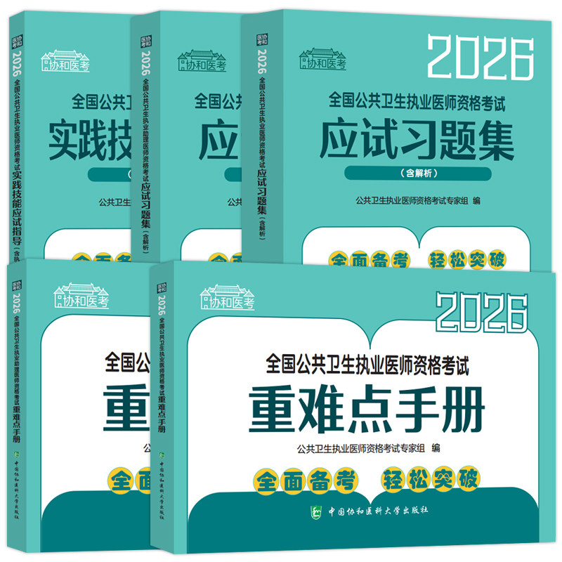 【官方新版】《协和公卫执业医师2026公共卫生执业医师资格考试应试习题集》是权威机构精心编写的最新备考资料,紧扣2025—2026年国家公共卫生执业医师考试大纲,涵盖流行病学、卫生统计学、环境卫生、职业卫生、营养与食品卫生、儿少卫生及健康教育与健康促进等核心科目。本书融合历年真题与高频考点,题型全面,解析详尽,助力考生夯实理论基础。配套《公卫执业医师2025年实践技能指导》,强化操作规范与应试技巧,全面提升综合应试能力。由协和专家团队审定,内容权威、重点突出,是广大公卫考生高效备考、顺利通过执业医师资格考试的必备工具书。