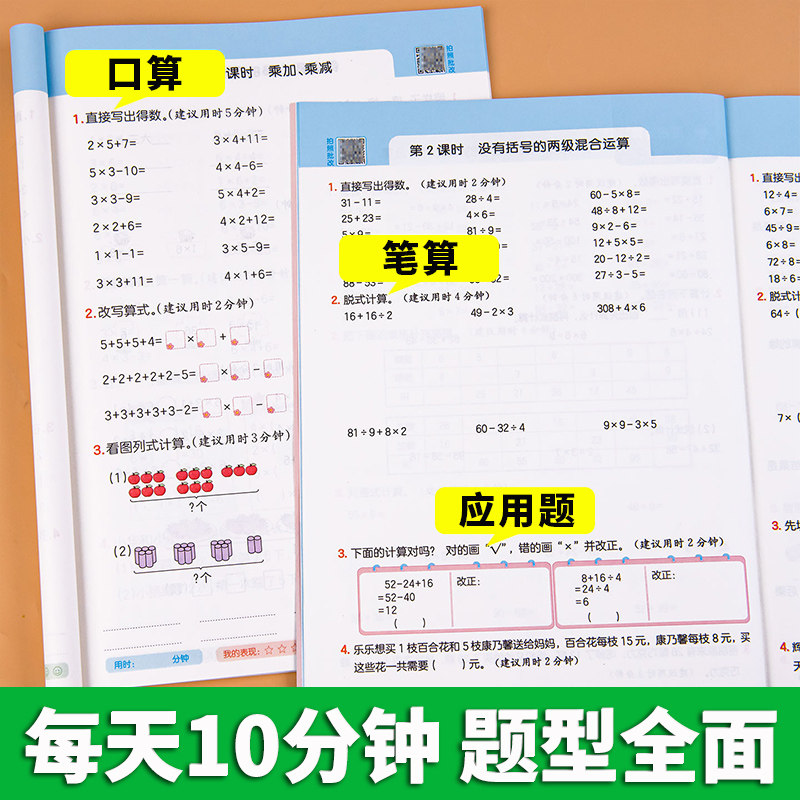 三年级上下册口算天天练人教版数学计算题每日一练小学3年级强化专项训练同步练习题册口算题卡竖式解题技巧计算高手三合一应用题