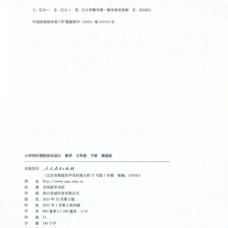 天猫2026适用人教版小学同步测控优化设计数学三年级下册练习题增强版课堂练习册(含试卷及答案)小学3三年级下册数学同步测控教辅资料