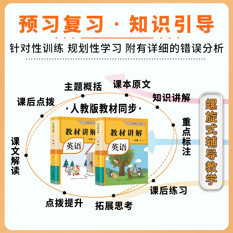 【正版速发】教材讲解二年级下册英语同步(2026年新版)紧扣最新课程标准,全面同步教材内容,涵盖每单元重点词汇、句型及语法知识,配有清晰易懂的讲解与拓展练习。本书精选典型习题,附详细解析,帮助学生巩固课堂所学,提升理解与应用能力。编排科学,图文并茂,适合学生自主学习与家长辅导使用。通过系统训练,有效提高英语听、说、读、写综合能力,夯实语言基础,培养学习兴趣。正版保障,印刷清晰,物流迅速,是二年级学生英语学习的得力助手。助力孩子轻松掌握课本知识,稳步提升学习成绩。