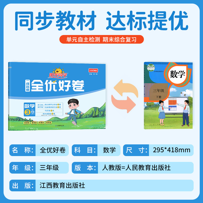 【官方旗舰店】2026春阳光同学三年级下册数学试卷测试卷全套,紧扣人教版、部编版教材,涵盖单元、专项、期中期末全阶段同步训练。试卷题型丰富,难度梯度合理,注重基础知识巩固与思维能力拓展,帮助孩子查漏补缺、提升解题技巧。精选典型习题,科学编排,助力高效刷题,夯实数学基础。每套试卷均配有详细解析,便于家长辅导和学生自查。官方正品保障,印刷清晰,纸张环保,是三年级学生课后练习、考前复习的理想选择。阳光同学,陪伴孩子轻松学数学,稳步提成绩!