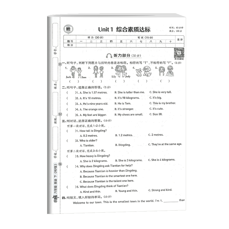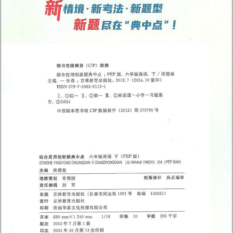 天猫荣德基典中点英语六年级下册英语人教版综合应用创新题课堂小学同步训练单元达标检测试卷练习题册课时课内外复习资料书典点天天练