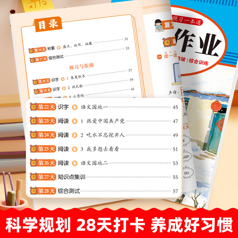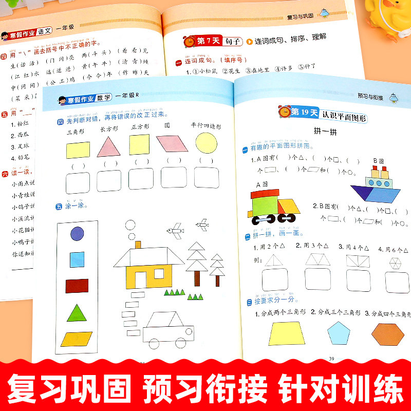 天2026新版 一年级寒假衔接人教版语文数学全套练习册1年级上册下册复习预习寒假作业一本通专项训练部编版小学生快乐寒假生活练习题