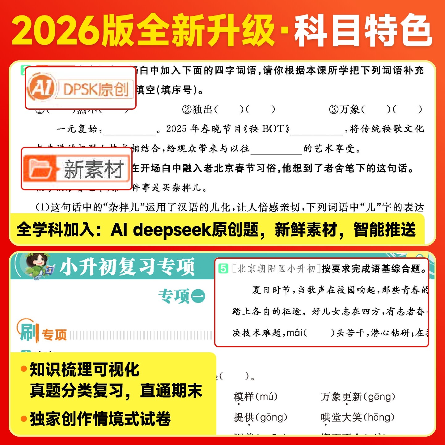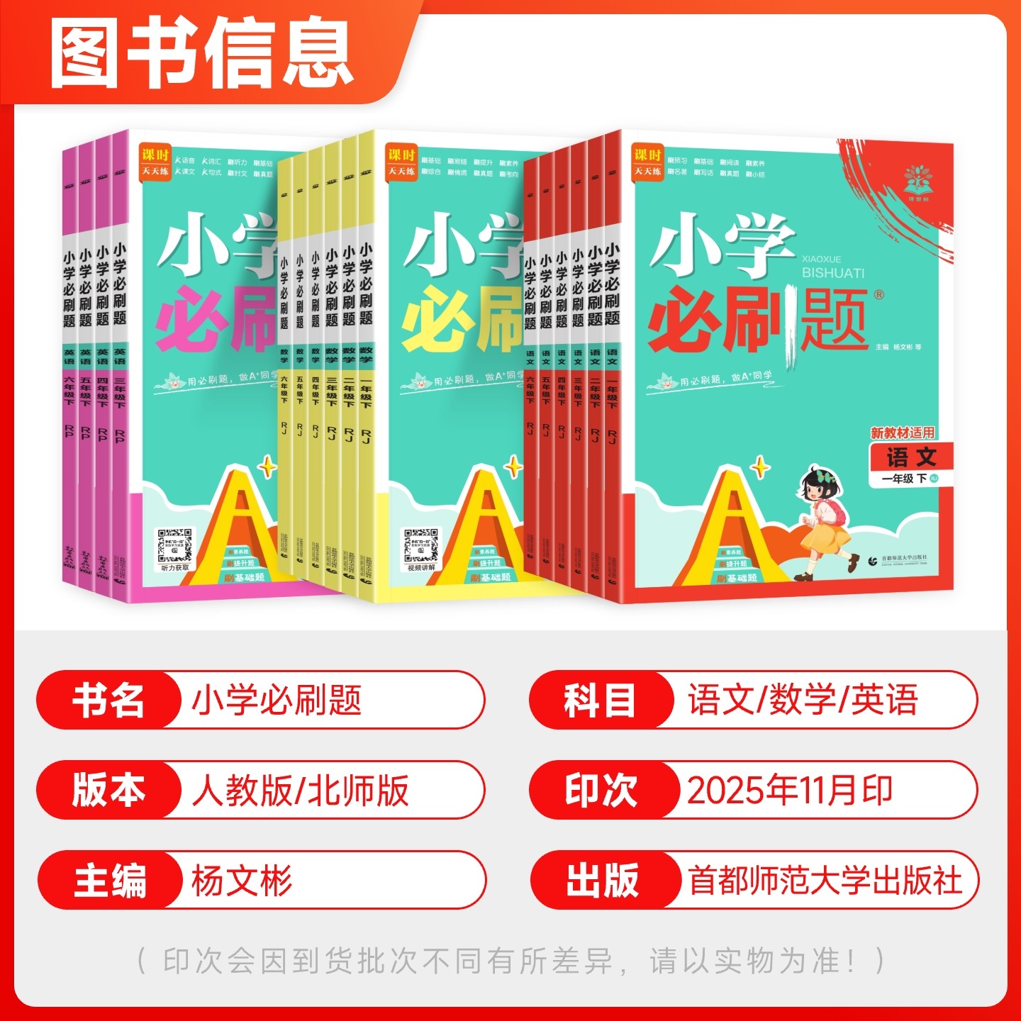 2026春小学必刷题系列专为小学一至六年级学生设计,涵盖语文、数学、英语三科,同步人教版、部编版、北师大版等主流教材下册内容。练习册精选典型题型,设置基础巩固、专项强化、阶段测评三大模块,帮助学生夯实课本知识,提升解题能力。题目难度梯度合理,注重思维训练与实际应用,配有详细解析,便于自学与家长辅导。适用于课堂同步练习、课后复习及考前冲刺,是小学生提升成绩、巩固学习成果的高效学习工具,助力孩子轻松应对学期考试,打好学科基础。