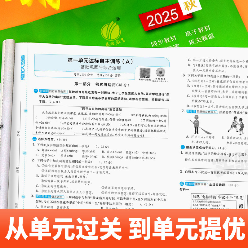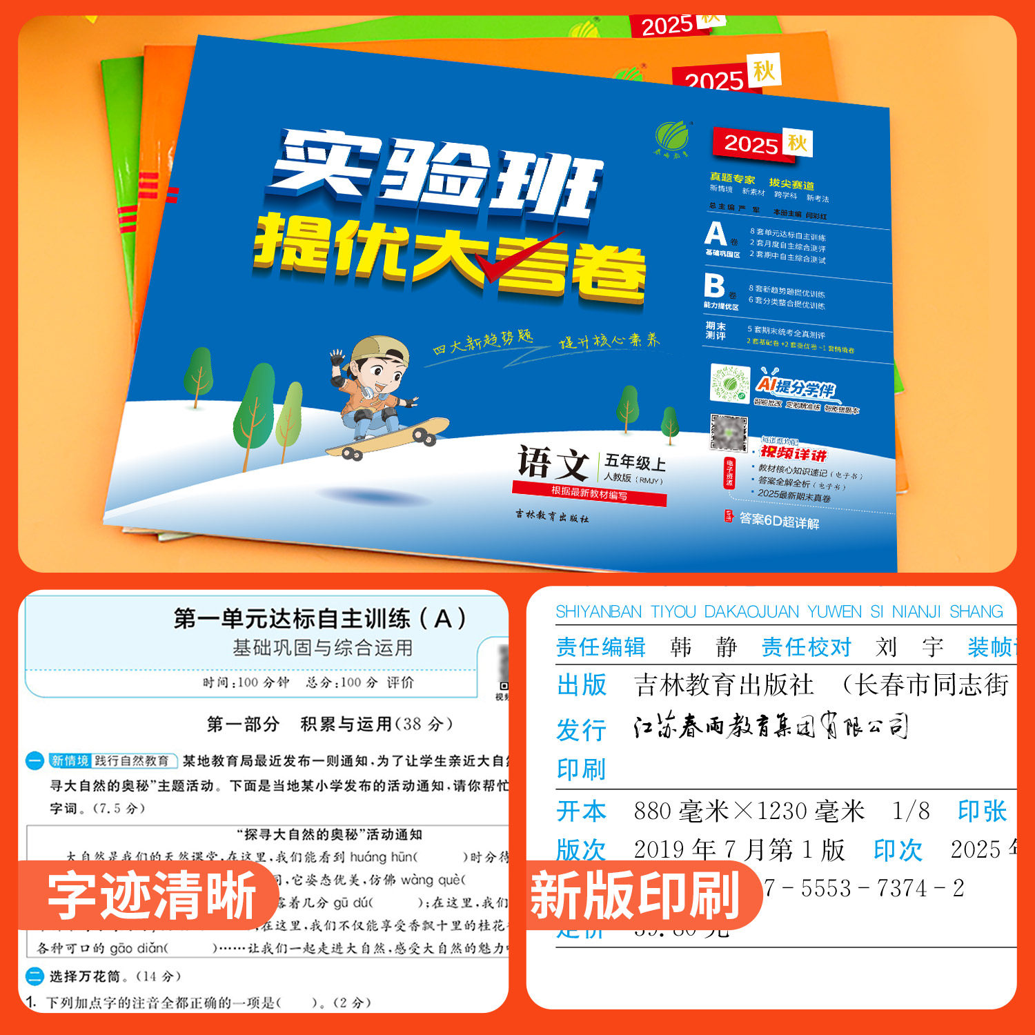 2026春适用《实验班提优大考卷》五年级语文、数学(人教版/北师大版/苏教版)上下册同步训练卷,紧扣新课标要求,涵盖单元、期中和期末达标测试卷,题型全面,难度分层。试卷精选典型例题,注重基础知识巩固与思维能力拓展,助力学生夯实课本内容,提升综合解题能力。每套试卷均配有详细解析,便于查漏补缺,实现高效培优。适合学有余力的学生进行提分训练,冲刺100分,是五年级学生同步练习、阶段检测和期末复习的理想教辅资料,全面提升语文素养与数学思维。