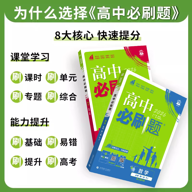 2026新版《高中必刷题》系列紧扣新课标与高考改革方向,专为高一、高二学生打造,涵盖语文、数学、英语、物理、化学、生物、政治、历史、地理九大学科。丛书依据最新教材体系编排,题型新颖、梯度合理,基础题、提升题、综合题层层递进,强化知识理解与解题能力。精选典型例题,配备详尽解析,注重思维训练与学科素养培养。同时融入跨学科情境与真实生活案例,提升学生综合运用能力。配套数字化资源,支持个性化学习,助力学生夯实基础、突破重难点,为高考打下坚实根基,是高中生高效备考的理想教辅之选。