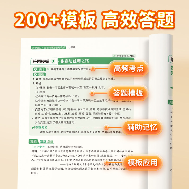 天猫易蓓初中七八年级历史道德与法治万能答题模板中考答题技巧材料分析题型整理知识大全手册