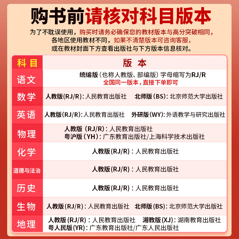 【新华书店】2026春新版《广东中考高分突破》系列,专为广东初中生打造,涵盖七、八、九年级上下册,包括语文、数学、英语、物理、道德与法治、历史、生物、地理等全学科。本系列为2025秋版升级教材同步练习册,紧扣广东中考考纲,题型新颖、难度分层,注重基础知识巩固与综合能力拓展。每册配备详细解析,助力学生查漏补缺、高效备考。内容编排科学,讲练结合,适合课前预习、课后复习及阶段性检测使用。由一线名师精心编写,是广东地区师生信赖的中考复习权威资料,助力学子突破重难点,冲刺高分。