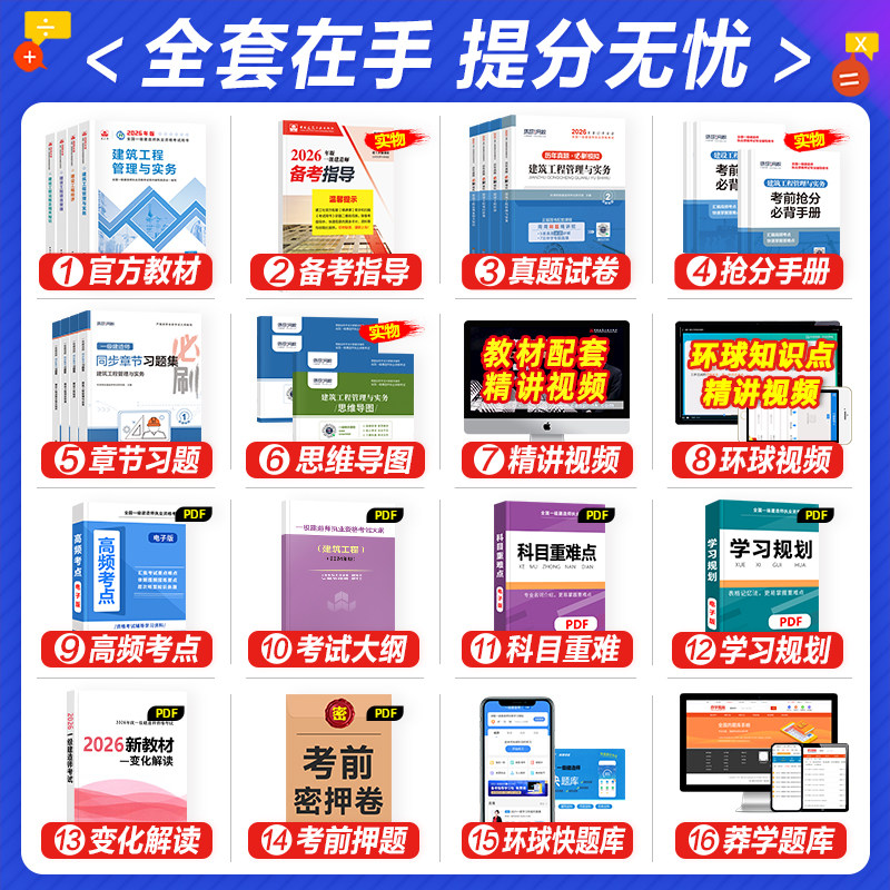 2026年一级建造师官方教材由建工社权威出版,涵盖建筑、市政、机电、公路、水利、矿业、通信、铁路等专业实务,以及法规、项目管理、工程经济等公共科目。教材严格依据最新考试大纲编写,内容全面、重点突出,配套2025年历年真题试卷及详细解析,帮助考生把握命题规律。同时提供高质量习题集与同步网课,强化知识理解与应试能力。作为官方指定用书,是备考一建的必备资料,助力考生系统复习、高效通关。