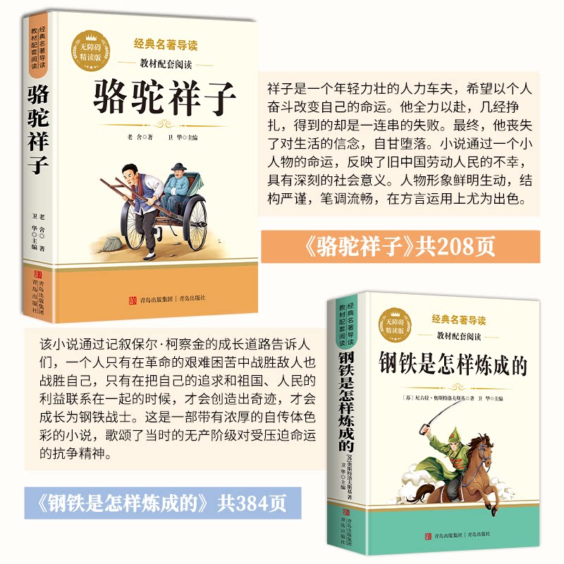 天猫骆驼祥子和钢铁是怎样炼成的七年级必读正版原著七年级下册必读课外书初一7上下学期必读名著课外书朝花夕拾和西游记鲁迅完整版