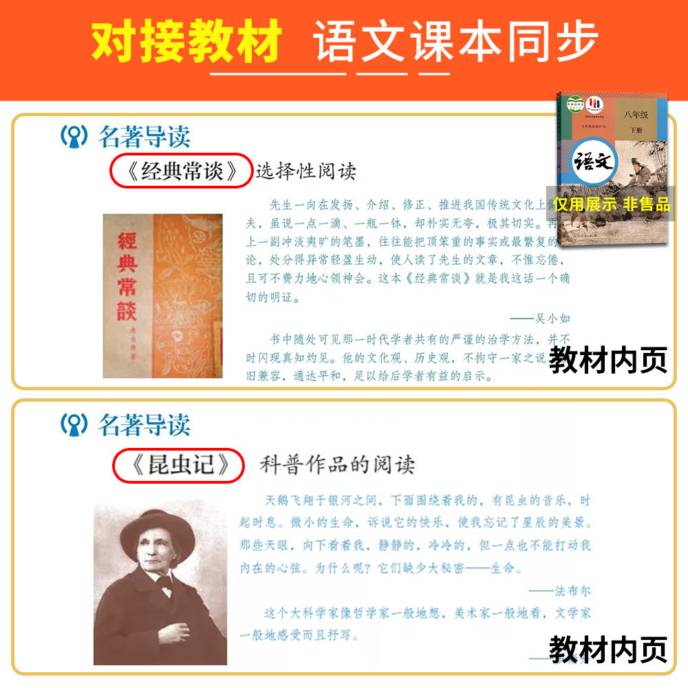 经典常谈和昆虫记人民教育出版社升级版朱自清法布尔经典常谈八年级下册阅读名著钢铁是怎样炼成的原著正版八下必读课外书必读名著