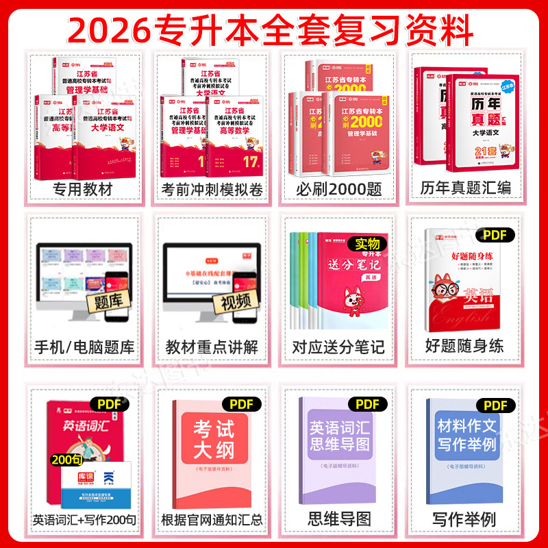 天猫库课2026江苏专转本高数大学语文英语机械工程电子信息管理财经经济学类教材历年真题试卷必刷题库克专升本考试复习资料五年一贯制