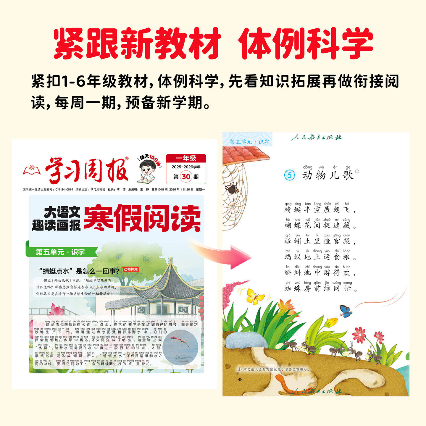 新品上市!2026新版大语文趣读画报寒假学习周报人教版小学一二三四五六年级半小时晚读画报学习阅读报纸一周一期课外阅读刊杂志