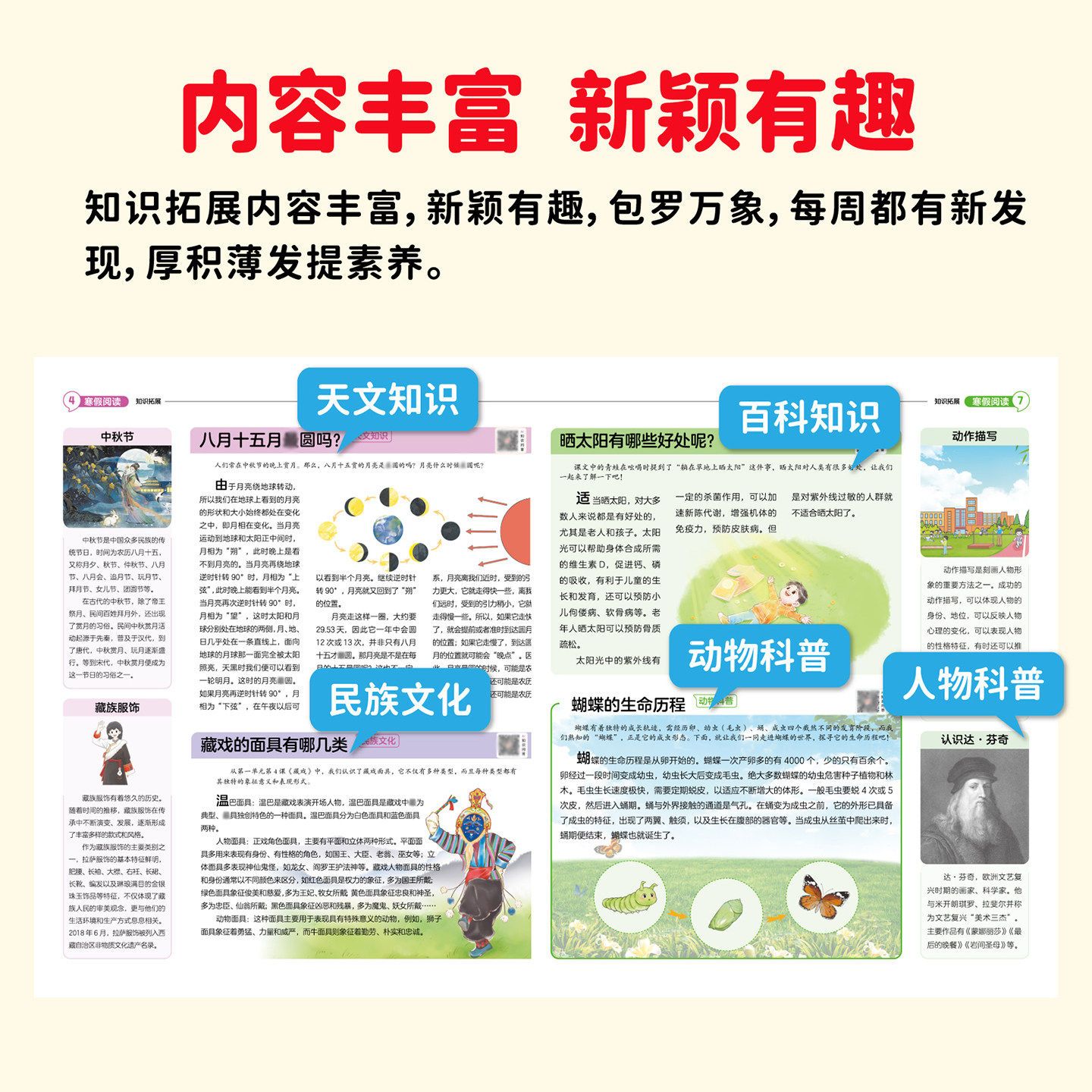 天2026新版大语文趣读寒假阅读报纸画报一二三四五年级预备新年级寒假假衔接知识拓展同步教材一周一练语文基础知识课外阅读训练期刊