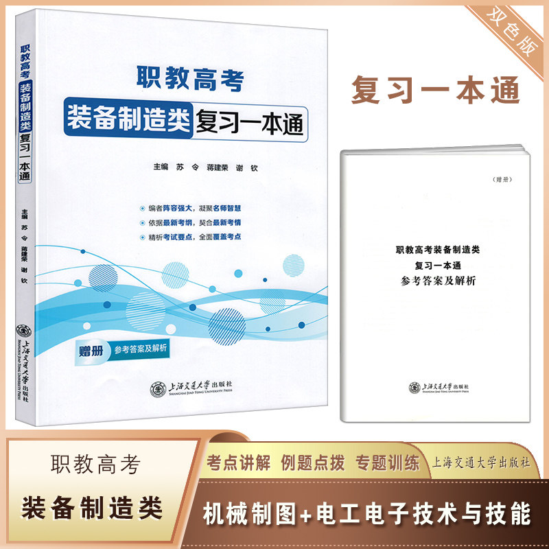 《职教高考装备制造类复习一本通·模拟训练卷》专为中职生对口升学考试设计,涵盖机械制图、电工电子技术与技能等核心内容。本书紧扣最新考纲,精选典型题型,提供多套高质量模拟试卷,全面考查学生识图绘图、电路分析、元器件应用等实操能力。每套试卷均配有详细答案解析,帮助学生理解考点、掌握解题思路,提升应试技巧。内容系统全面,难易适中,适合考前冲刺复习使用。通过反复训练,考生可巩固基础知识,强化重点难点,有效提高考试成绩,是备战职教高考装备制造类专业的权威辅导教材。