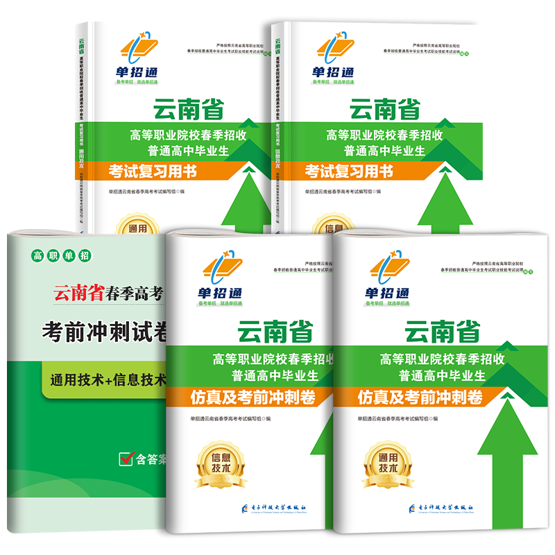 “单招通”2026年云南省春季高考高职单招考试复习资料,专为中职及职教高考考生精心打造。涵盖通用技术、信息技术、综合素质、职业适应性测试等核心科目,配套数学、英语及文化课系统教材与题库卷,紧扣云南省春招考纲,题型全面、难度适中。资料融合历年真题与模拟训练,注重基础知识巩固与实战能力提升,帮助考生高效备考。内容结构清晰,讲解详尽,适合自主复习与课堂辅导使用,是备战2026年高职单招的理想选择,助力考生顺利圆梦理想高职院校。