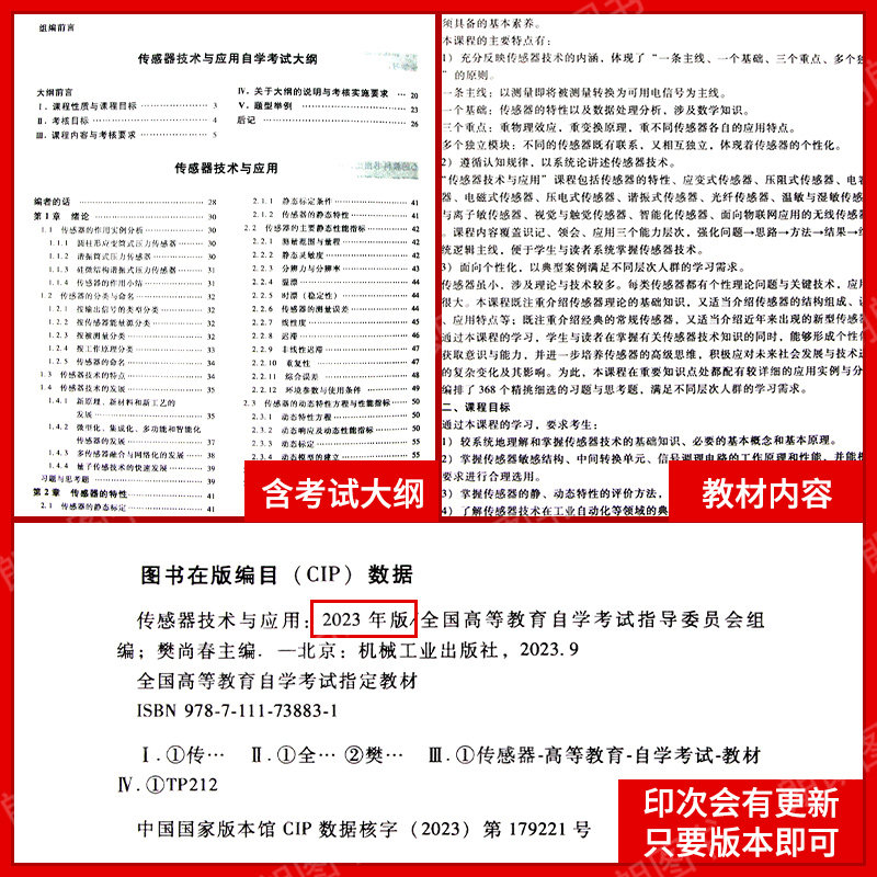 天猫全新正版自考教材07454 传感器技术与应用 2023年版 樊尚春主编 机械工业出版社自学考试大纲指定教材 朗朗图书