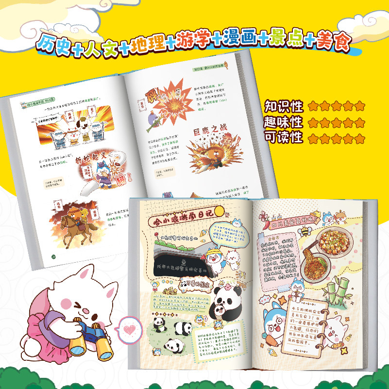 《哈小浪游中国》四川篇+陕西篇,专为6-12岁小学生打造的趣味游学漫画!跟着萌趣主角哈小浪,穿越巴蜀与三秦大地,探秘三星堆神秘文明、打卡大熊猫故乡,登华山论剑、访兵马俑军阵,在爆笑奇遇中轻松学历史、地理与人文知识。书中融合地道川陕美食(火锅、肉夹馍)、方言趣闻与非遗文化,以生动漫画呈现课本外的精彩中国。每章附知识小贴士,激发孩子探索欲,让阅读变成一场边玩边学的文化旅行,是孩子课外阅读的绝佳选择!