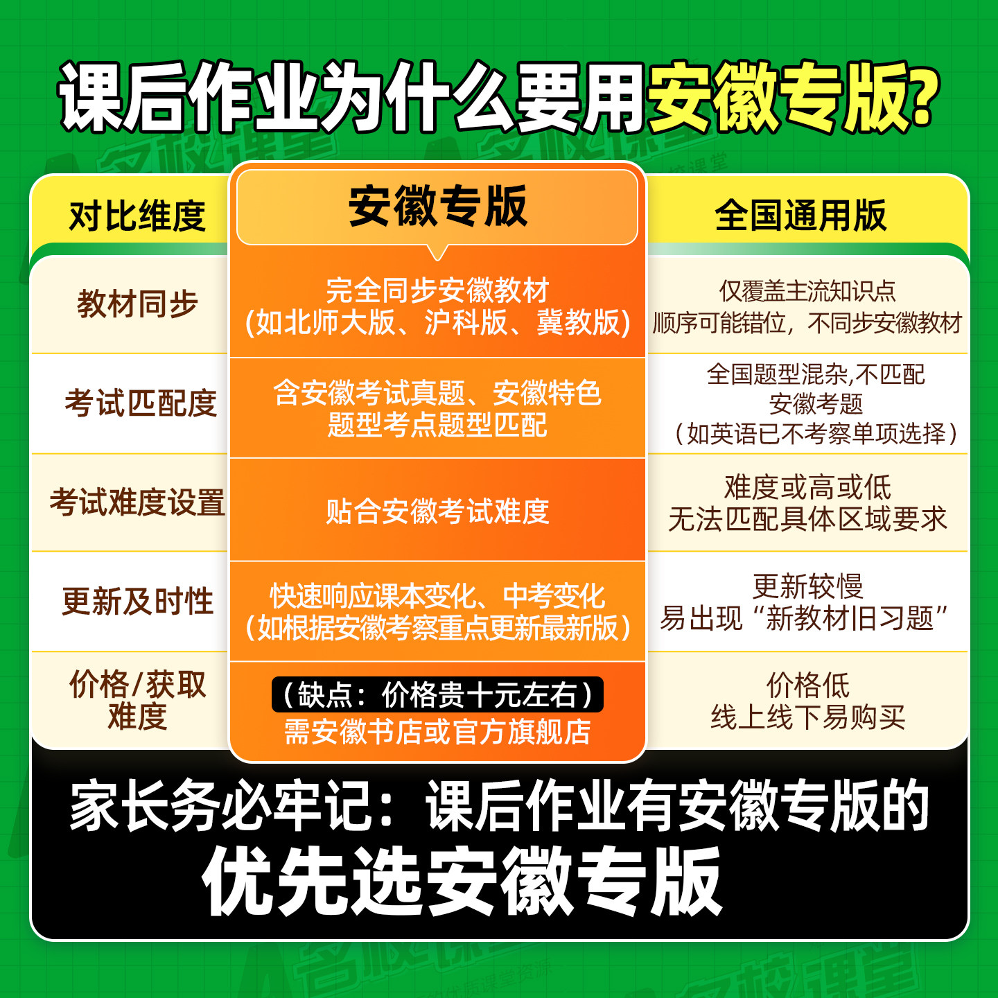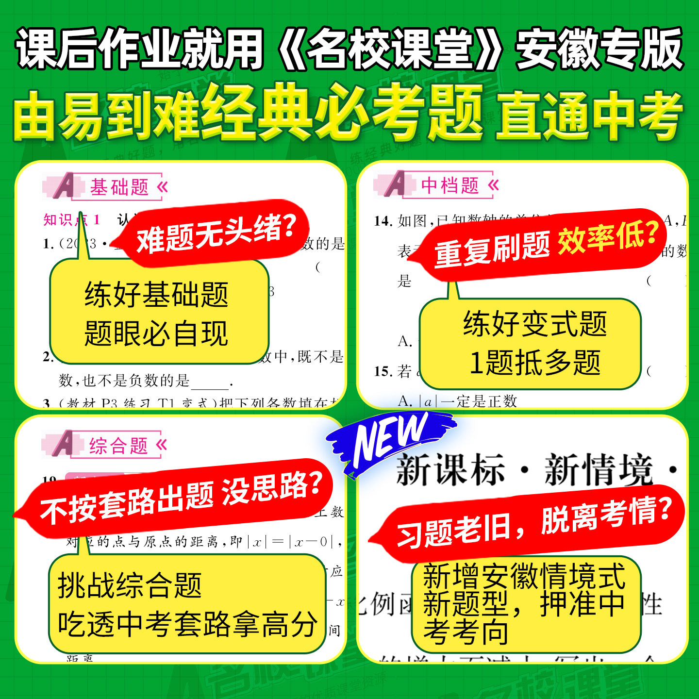 《安徽专版·2026春名校课堂》系列同步练习册,专为安徽地区初中生设计,覆盖七年级至九年级语文、数学、英语、物理、化学、生物、政治、历史、地理九大学科,下册配人教版教材。本书紧扣新课标与安徽中考考情,精选名校真题与典型例题,设置“基础巩固—能力提升—拓展探究”分层训练,帮助学生夯实基础、突破重难点。题型新颖,题量适中,配有详细解析,便于自学与查漏补缺。上册内容系统梳理,下册强化专项训练,是初一至初三学生同步学习、高效提分的理想教辅,助力学生掌握必刷题型,提升综合素养。