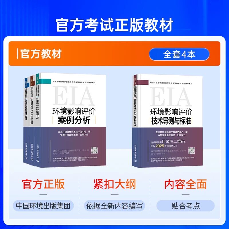 2026年环评工程师备考教材4册套装,专为注册环境影响评价师考生精心打造,涵盖《环境影响评价技术方法》《环境影响评价导则与标准》《环境影响评价法律法规》《环境影响评价案例分析》四大核心科目,内容紧扣最新考试大纲,系统全面、重点突出。套装附赠2025年历年真题及解析,帮助考生熟悉命题规律,提升应试能力。所有资料均为正版权威出版物,配套习题与解析详尽,助力高效备考。随书赠送2026年最新考试大纲,确保复习方向精准无误。适合零基础至冲刺阶段考生使用,是备战注册环评工程师考试的必备学习资料。