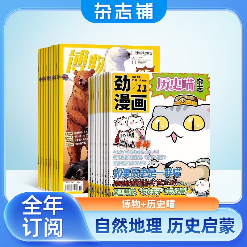 天猫博物+历史喵杂志组合 2026年1月起订 1年共24期 杂志铺全年订阅 风趣幽默历史漫画书历史故事 青少年科普中小学生课外阅读期刊