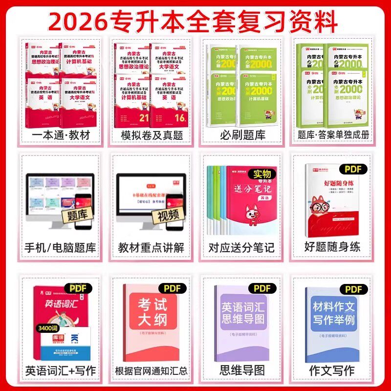 天猫库课2026年内蒙古专升本教材必刷题真题试卷必刷2000题语文英语政治计算机信息技术统招考试教材历年真题卷复习资料2025易学仕