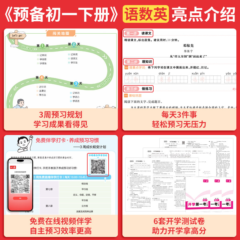 天猫2026一本预备新初一初二下册寒假课本预习语文数学英语小四门物理人教版预习笔记初中七八年级下册教辅书教材同步讲解基础知识练习
