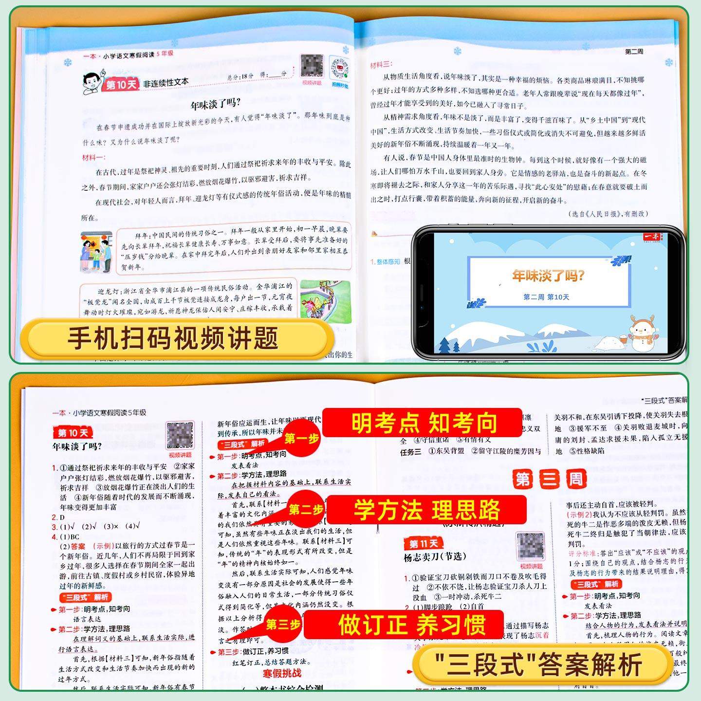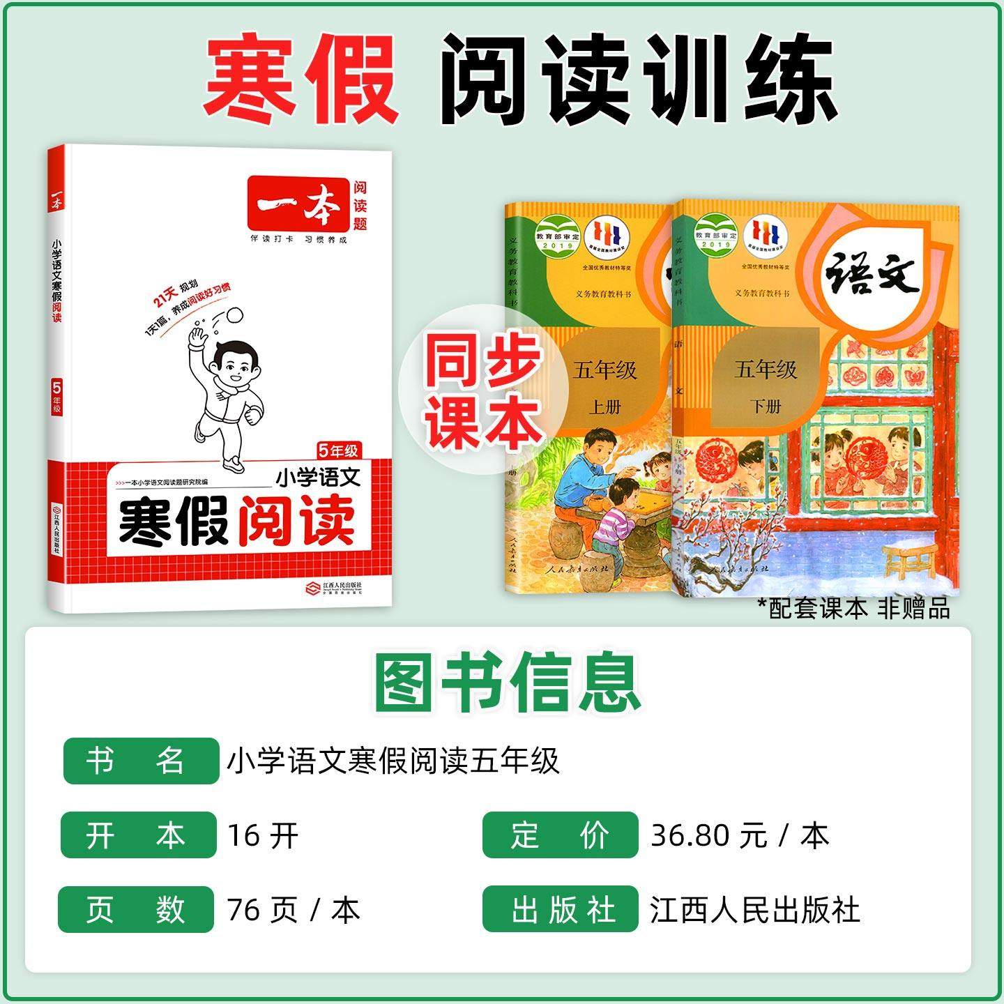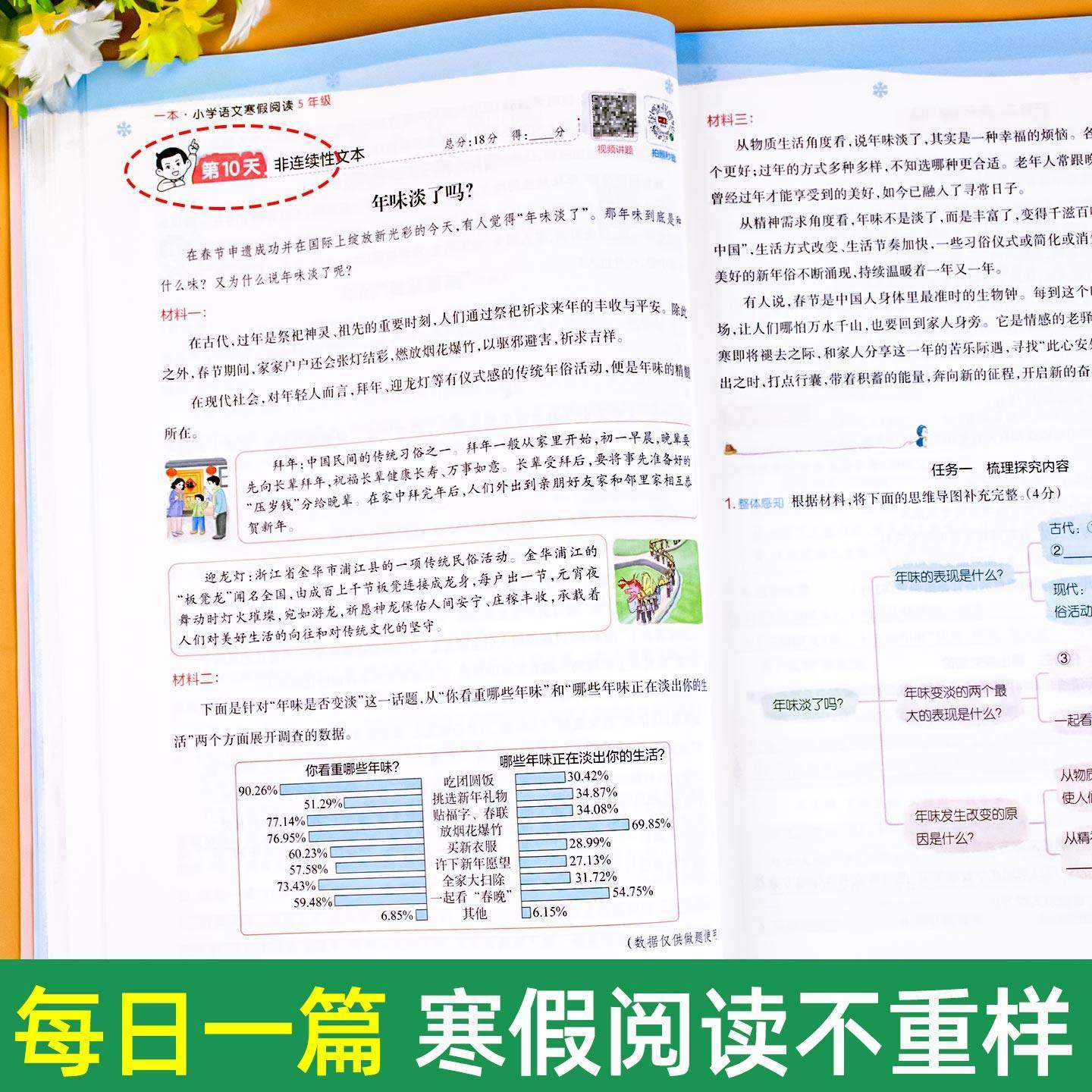 天猫五年级寒假阅读 语文阅读理解专项训练一本5年级上册每日一练人教版寒假衔接专项练习册小学寒假作业课外阅读理解强化训练书练习题