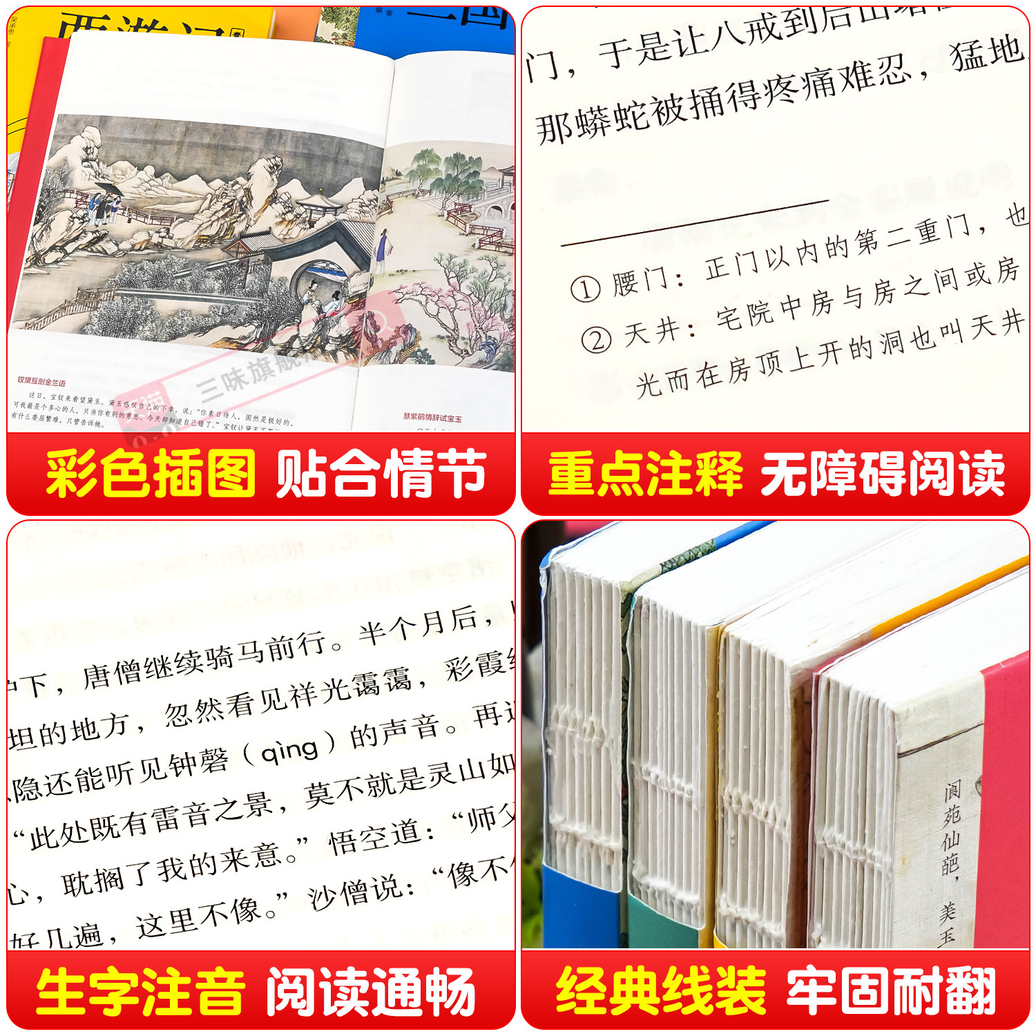 天猫全4册四大名著青少版原著正版红楼梦西游记水浒传三国演义五年级下册必读课外书白话文全套 疑难字注音注释中小学课外阅读经典读物