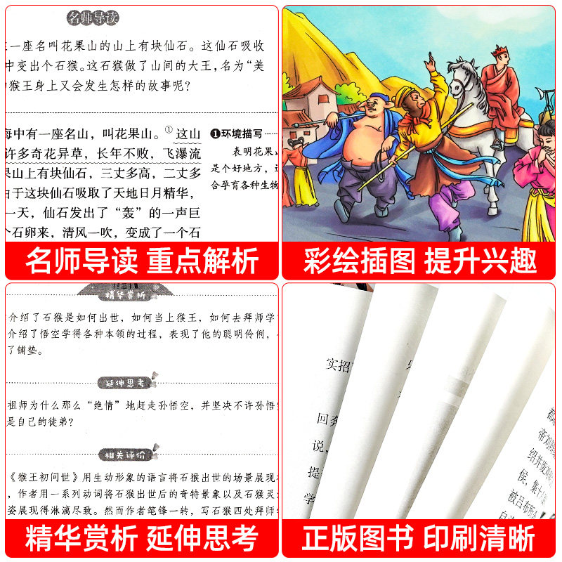 天猫四大名著原著正版小学生版五年级下册必读课外书水浒传西游记红楼梦三国演义小学生版 中国四大名著青少年版本五下快乐读书吧全套