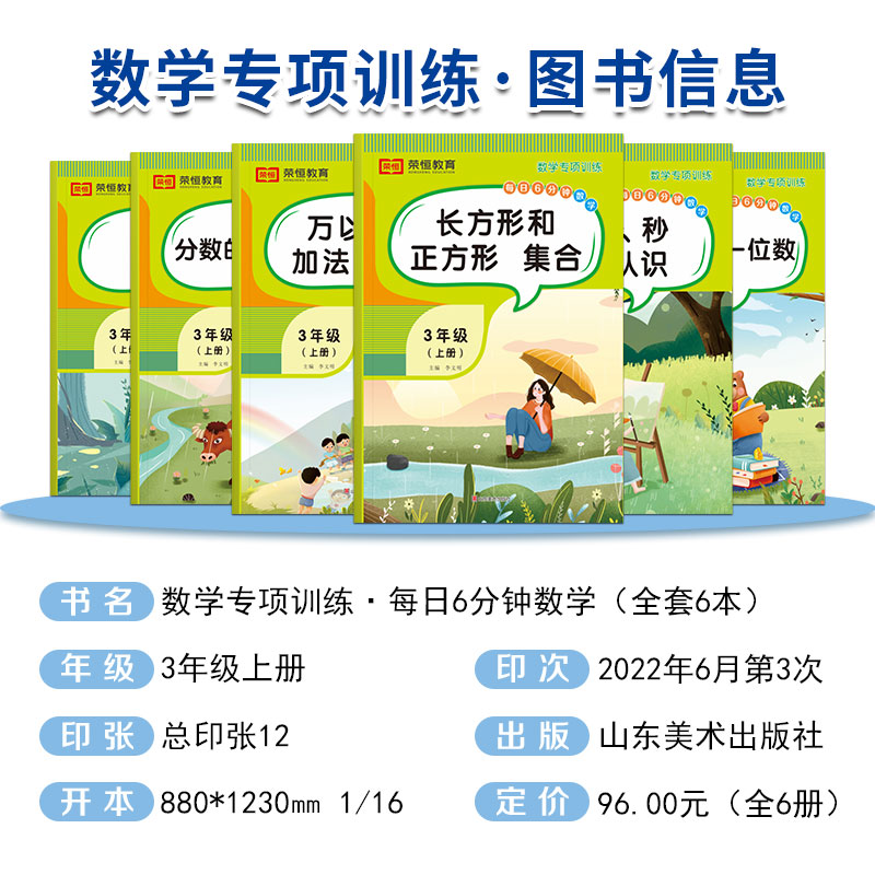 《三年级上册数学专项训练全套6册》是人教版小学数学同步练习丛书,紧扣教材内容,系统覆盖万以内加减法、时分秒认识、应用题强化等核心知识点。全书共6册,分专题训练,包含口算、计算、思维拓展及综合应用题,题型丰富、梯度合理,注重基础巩固与能力提升。每日一练的设计帮助学生养成良好学习习惯,强化计算速度与准确率,同时培养数学思维能力。适合课堂同步使用或家庭辅导,是三年级学生夯实数学基础、提升综合素养的高效练习工具。