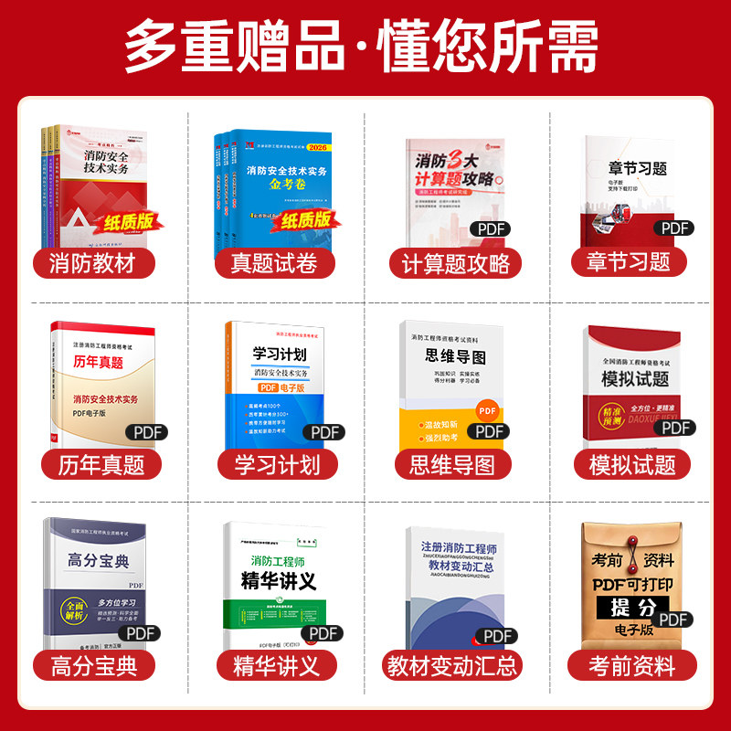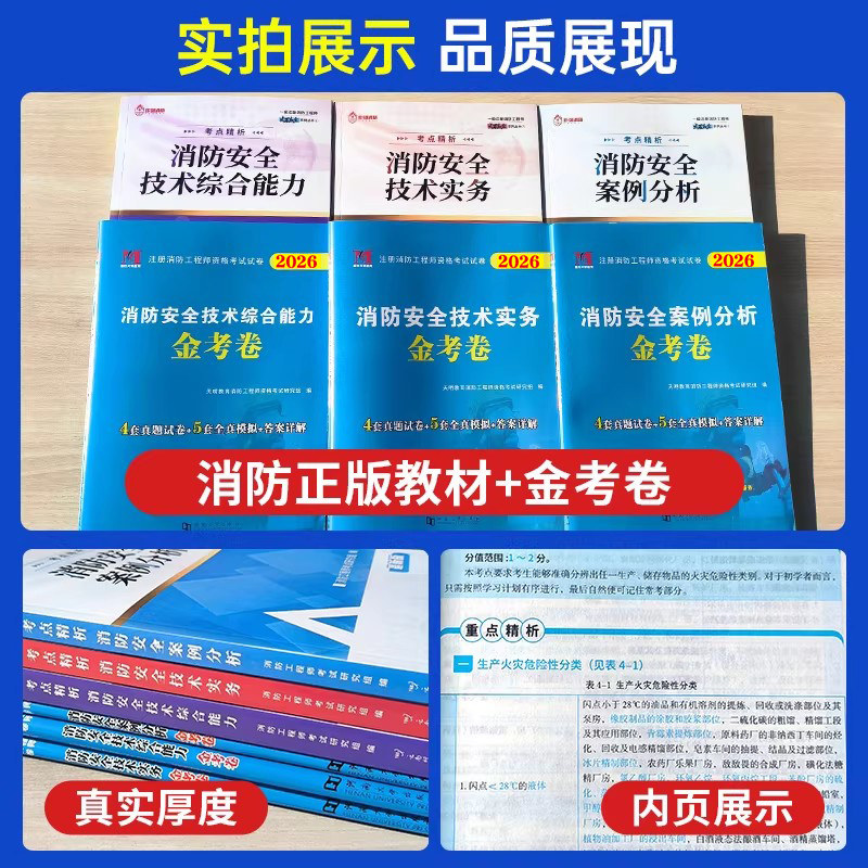 2026年新版注册一级、二级消防工程师官方教材及配套书课包全新上市,全面依据最新考试大纲与规范编写,涵盖《消防安全技术实务》《消防安全综合能力》《消防安全案例分析》三大科目。教材内容权威精准,重点突出,配套历年真题试卷、精选习题集及高频考点解析,助力考生高效备考。同时提供高清视频网课、智能题库和在线模考系统,支持多终端学习,实现“书+课+题”一体化学习模式。无论是一消还是二消考生,均可通过本套书课包系统掌握核心知识,提升应试能力,顺利通过消防工程师资格考试,助力职业发展。