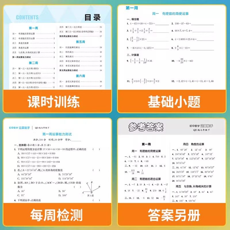 天猫【沪科版】2026新版通成学典运算能手初中数学七八年级上册下册计算题专项强化训练初一初二口算题卡练习题资料教材辅导书籍天天练