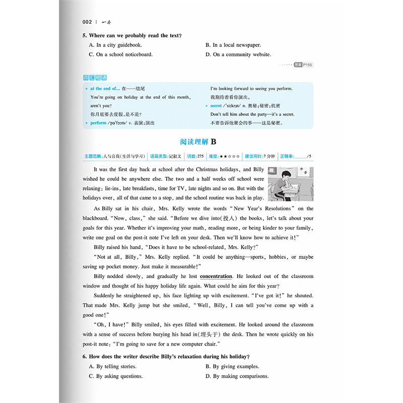 《2026河南专版一本·七年级至九年级英语完形填空与阅读理解·语篇填空·补全对话》是一本专为河南初中生设计的中考英语专项训练丛书。全书涵盖七、八、九年级上下册内容,紧扣河南中考新题型,系统整合完形填空、阅读理解、语篇填空及补全对话四大核心题型。题目选材贴近生活,注重语言运用能力与思维训练,难度梯度合理,基础与提升并重。每篇练习配有详细解析,帮助学生掌握解题技巧,夯实语言基础,提升综合应试能力。本书适用于日常同步练习与考前强化训练,是河南初中生备战中考英语的高效实用工具书。