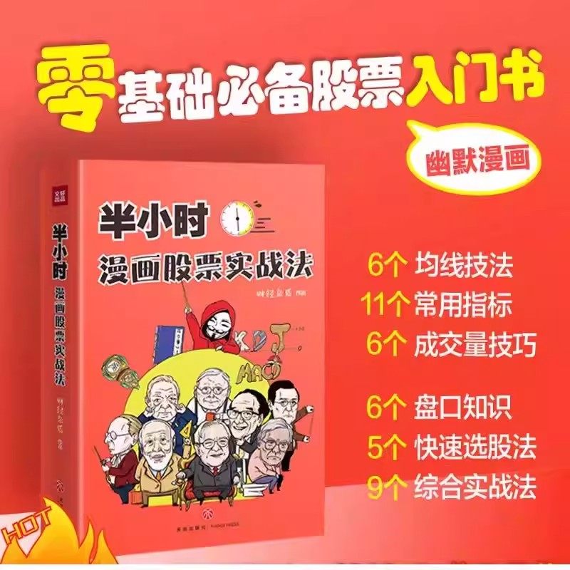 《半小时漫画股票实战法》是一本专为零基础读者打造的股票入门读物,巧妙融合幽默漫画与实战技巧,让复杂的股市知识变得轻松易懂。书中通过生动有趣的图文讲解,系统介绍A股基础知识、K线形态、技术指标、买卖策略及风险控制,帮助读者快速掌握炒股核心要点。无论是新手扫盲,还是基金、理财知识拓展,本书都是理想选择。作为正版财经读物,它摒弃枯燥理论,以“实战+漫画”的创新形式,让读者在轻松阅读中建立投资思维,规避常见误区,是零基础学炒股的实用利器。